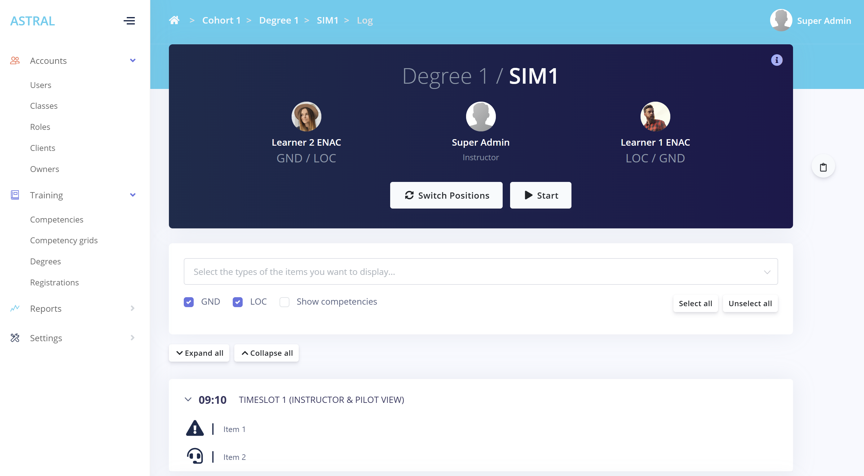 Durant ces séances, les élèves travaillent généralement en binômes, sous la supervision d'un instructeur et avec la participation de pilotes qui contribuent à la mise en situation au travers des échanges radio.